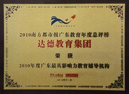 达德办学20年,获得国家级政府先进集体荣誉两次,省级先进荣誉5次,市级和社会荣誉多次。